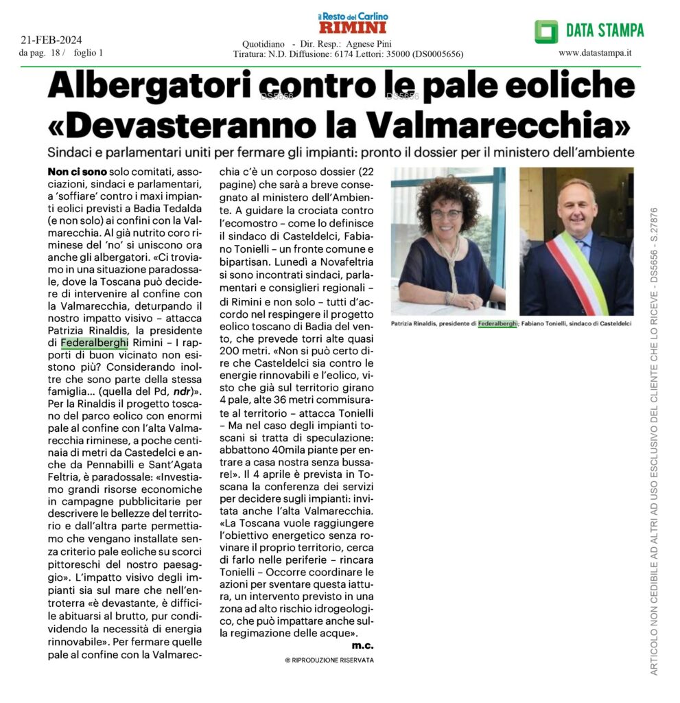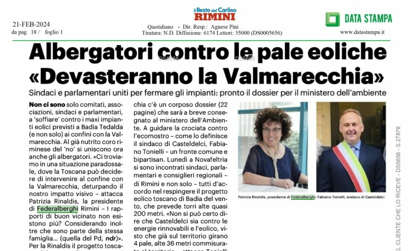 Pale eoliche 21 Febbraio 2024 Condividi Facebook Email leonardo Articoli Correlati Rassegna stampa Prezzi pazzi in Hotel Leggi l'articolo Rassegna stampa No allo scippo del personale. Clicca sul titolo per leggere l'articolo della Presidente Patrizia Rinaldis. Rassegna stampa Federalberghi: Pasqua in Hotel con riscaldamento.